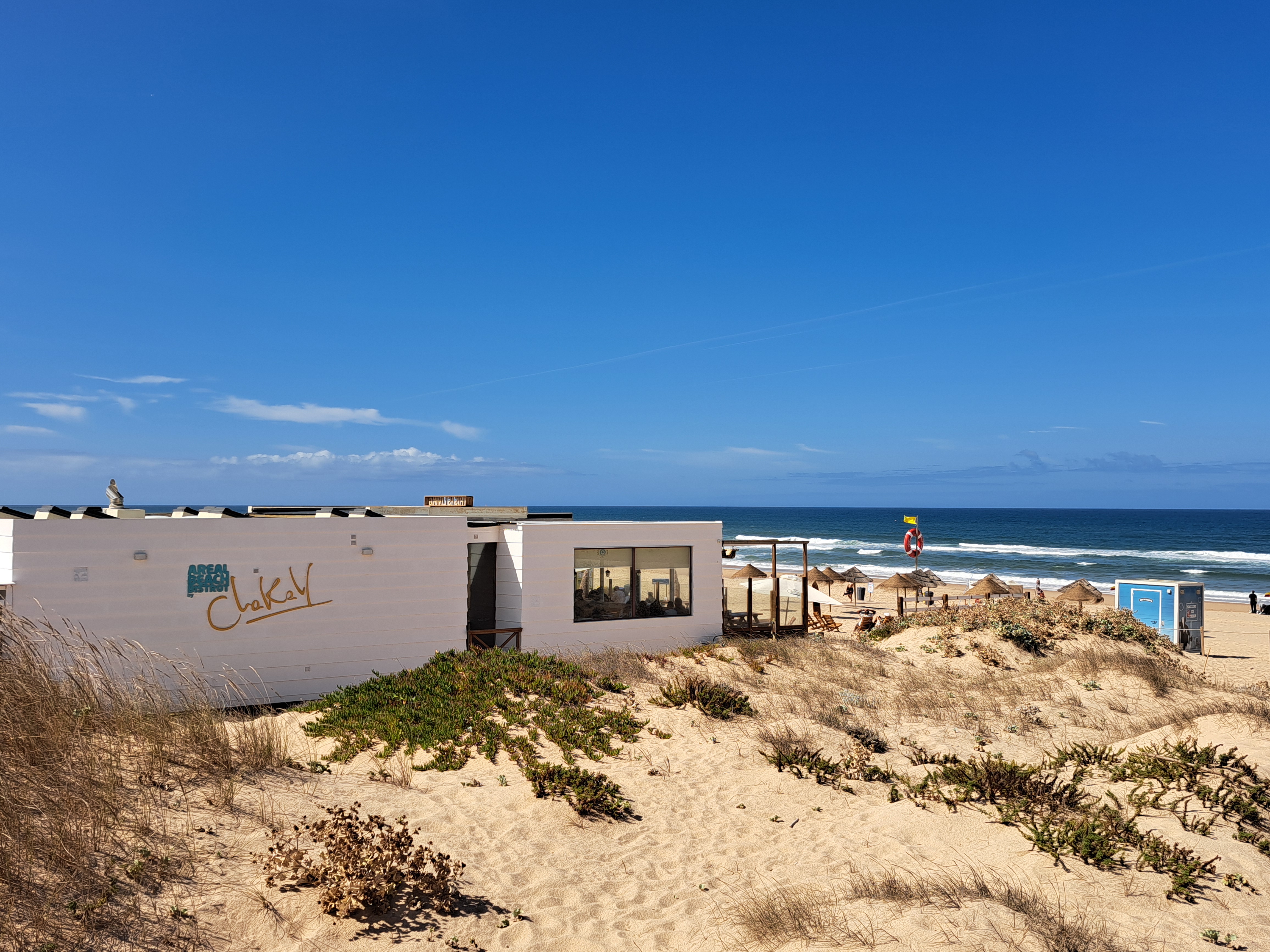 Stille Gassen, ein kleiner Supermarkt, endloser Strand und authentisches Küstenleben erwarten dich direkt in Areia Branca. Ein größeres Dorf, Praia da Areia Branca, ist über einen schönen Strand-Holzsteg fußläufig in ca. 25 Min. erreichbar.
